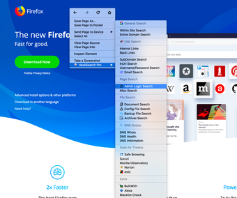 HackSearch Pro to narzędzie przeznaczone dla specjalistów z zakresu rozwoju i IT, które umożliwia przeprowadzanie rekonesansu stron internetowych. Program działa na platformie Firefox i jest dostępny w modelu subskrypcyjnym. Użytkownicy mogą otworzyć swoją stronę w przeglądarce, a następnie z menu kontekstowego wybierać z różnych opcji oferowanych przez HackSearch Pro.